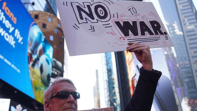 2月28日,民众在美国纽约举行集会游行,抗议美国和以色列军事打击伊朗。 新华社记者 张凤国 摄