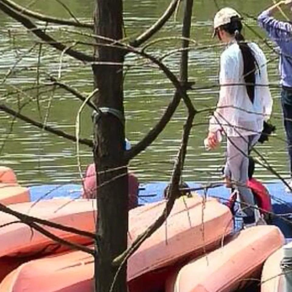 还有一张是一家三口去划船的照片,张馨予站在岸上,旁边坐在船上的应该就是老公何捷以及 7 岁的女儿。虽然镜头没拍到多少画面,但正好也能更好地保护他们,毕竟张馨予从来没有公开过女儿的照片。